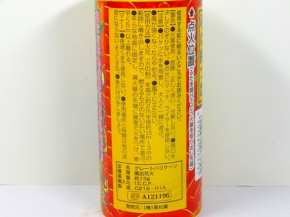 この花火は、赤小星と白点滅星が最初吹き出しその後緑小星と白点滅星がく噴き出します。白点滅星は点滅時に火花が大きく広がり、まさにグレートです。